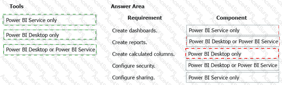 The company ' s IT support team needs to know when to install Power BI Desktop on users ' computers and where the Power BI Service will suffice to perform tasks.