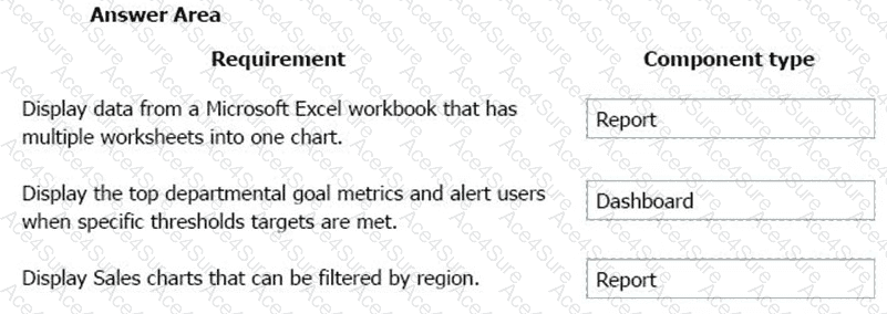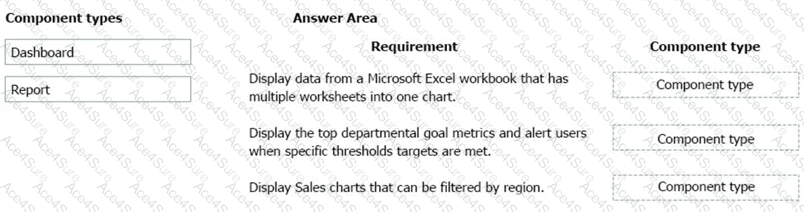 What should you recommend? To answer, drag the appropriate components to the correct requirements. Each component may be used once, more than once, or not at all. You may need to drag the split bar between panes or scroll to view content.