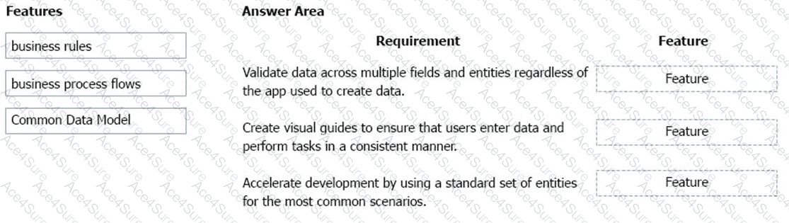 Which features should you recommend? To answer, drag the appropriate features to the correct requirements. Each feature may be used once, more than once, or not at all. You may need to drag the split bar between panes or scroll to view content.