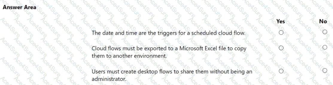 Instructions: For each of the following statements, select Yes if the statement is true. Otherwise, select No.