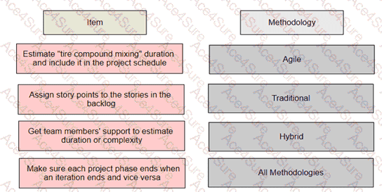 A project manager in an automotive company is scheduling activities for a complex project Some of the project requirements are fixed and some are flexible Match the items on the left with the methodology on the right that the project manager is using.