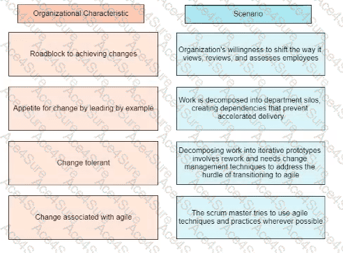 Drag the organizational characteristics on the left to the correct scenario on the right