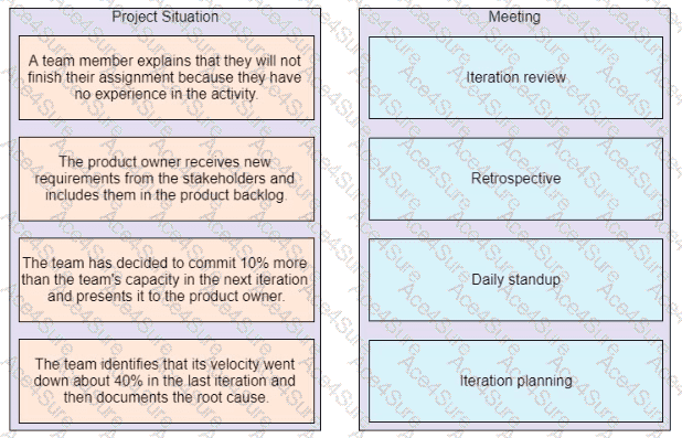 Match the project situation on the left to the meeting on the right where the situation could occur.