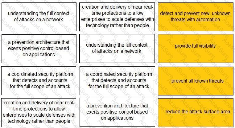 ● Reduce the attack surface: Best-of-breed technologies that are natively integrated provide a prevention architecture that inherently reduces the attack surface. This type of architecture allows organizations to exert positive control based on applications, users, and content, with support for open communication, orchestration, and visibility.