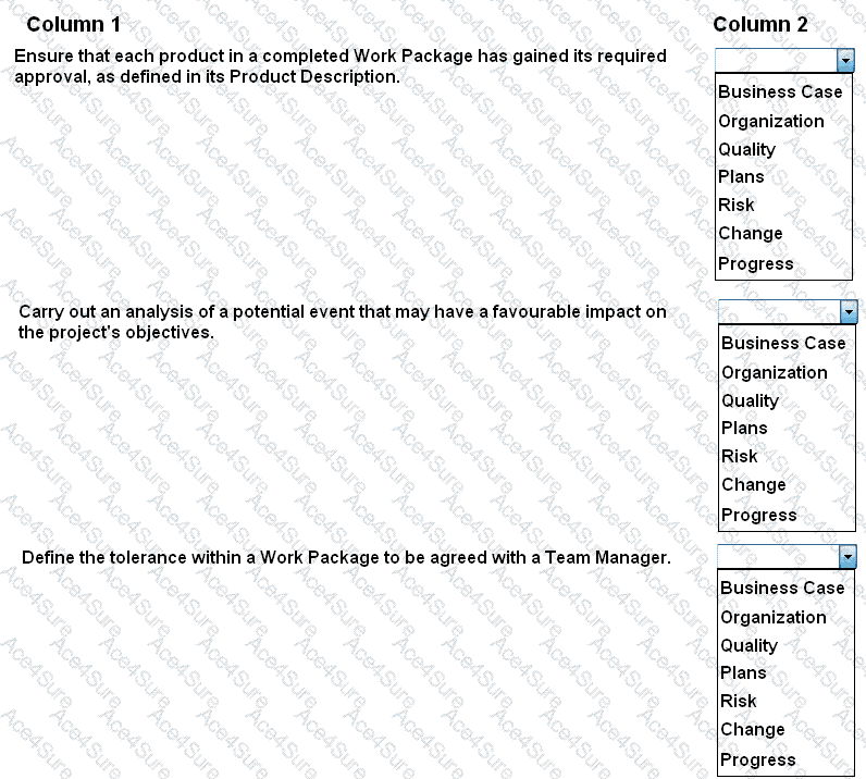 Column 1 is a list of actions that occur during the Controlling a Stage process. For each action in Column 1, select from Column 2 the PRINCE2 theme that is being applied. Each selection from Column 2 can be used once, more than once or not at all.
