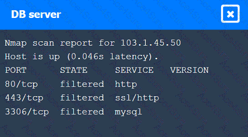 DB Server has all ports filtered, typical for a database server that should not be directly accessible.