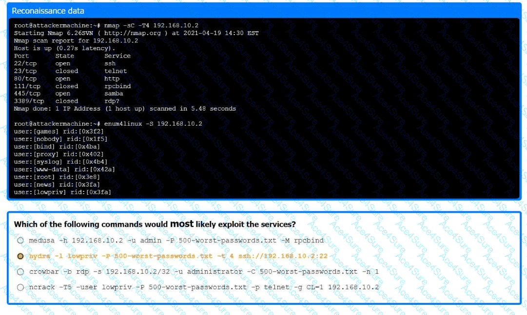 Purpose: To perform a brute force attack on SSH using the lowpriv user and a list of the 500 worst passwords.