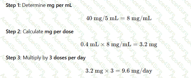 A prescription reads:Famotidine 40 mg/5 mLQuantity: 50 mLSig: 0.