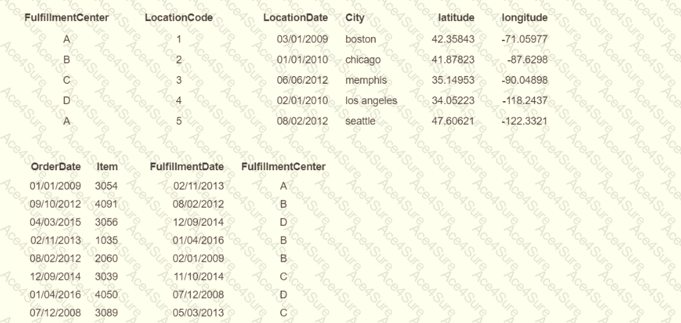 A data architect has a data model that includes historical order fulfillment centers. The order fulfillment centers occasionally changed location. The history of order fulfillment must be tracked on a per center, per location basis.