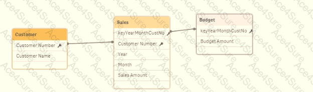 The data architect needs to build a model that contains Sales and Budget data for each customer. Some customers have Sales without a Budget, and other customers have a Budget with no Sales