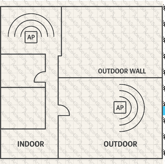 Based on the AP mounting locations, which AP antenna types provide complete coverage to both the indoor and outdoor areas?
