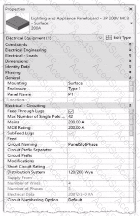 In Autodesk Revit Electrical Design, the Circuit Number for a branch circuit in a panelboard is automatically generated based on the Circuit Naming Scheme specified in the project’s Electrical Settings. This naming scheme defines how each circuit is labeled by combining predefined fields such as Panel Name, Slot Index, and Phase Label.