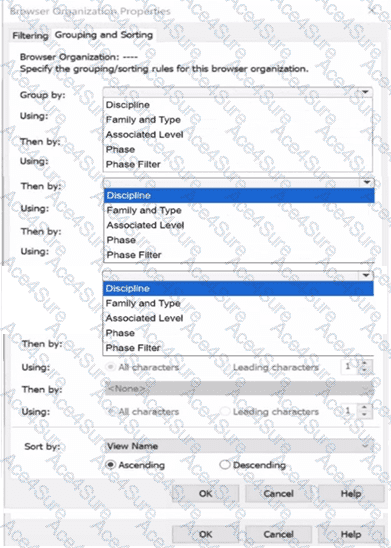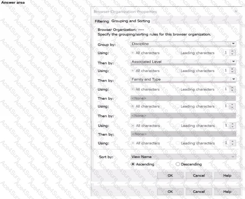 To achieve this layout, the designer must apply the following browser organization setup in the Browser Organization Properties dialog box: