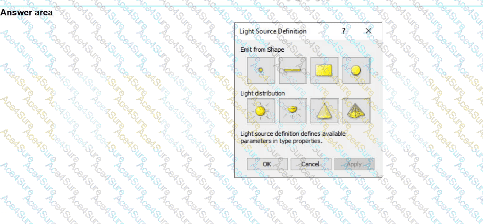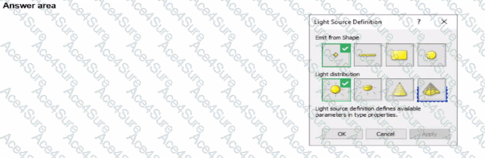 In Autodesk Revit’s Family Editor, when defining a light source for an electrical lighting fixture family, the Light Source Definition dialog controls how the light behaves visually and analytically. When incorporating an IES photometric web file (.ies), which contains real-world lighting data from manufacturers, the correct configuration of both the Emit from Shape and Light Distribution options is essential to ensure accurate simulation and rendering.