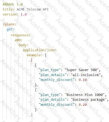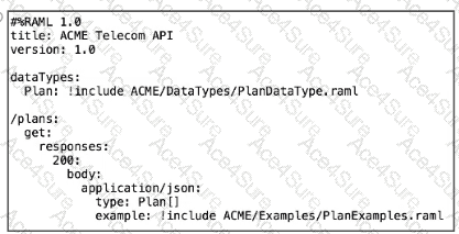 The API needs to beupdated using the company-wide standard for the Plan data type. The Object data type has already been published in Anypoint Exchange with the global reference . ACME/DataTypes/PlanDataType.raml.