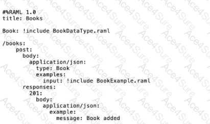 Refer to the exhibits. A company has defined this Book data type and Book example to be used in APIs. What is valid RAML for an API that uses this Book data type and Book example?