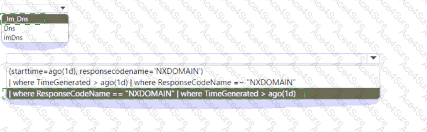 How should you complete the query? To answer, select the appropriate options in the answer area