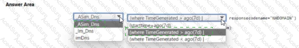 In Microsoft Sentinel, the Advanced Security Information Model (ASIM) provides a standardized schema and parser layer for common telemetry types (DNS, Authentication, NetworkSession, etc.). To investigate DNS-related activity, you should use the ASIM-normalized table ASim_Dns, which unifies data from multiple DNS sources (Microsoft Defender for Endpoint, Azure Firewall, DNS servers, etc.) under a consistent schema.