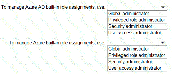 According to the Microsoft SC-300: Identity and Access Administrator Study Guide and Microsoft Learn modules “Implement and manage Azure AD roles” and “Implement Privileged Identity Management (PIM)”, there is a clear distinction between Azure AD built-in roles and Azure (resource-based) built-in roles.