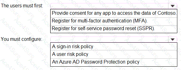 Configure a user risk policy — to automatically trigger password reset upon detection of compromised credentials.