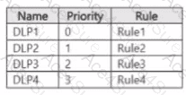 You have a Microsoft 365 E5 subscription that contains a Microsoft SharePoint Online site named Site! and the data loss prevention (DLP) policies shown in the following table.