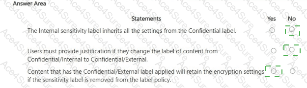 Statement 1: The Internal sensitivity label inherits all the settings from the Confidential label.