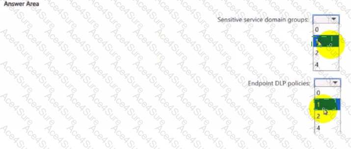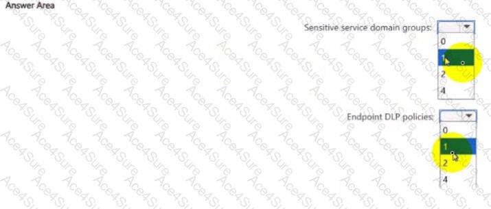 What If the minimum number of sensitive service domain groups and Endpoint DIP policies required? To answer, select the appropriate options in the answer area.