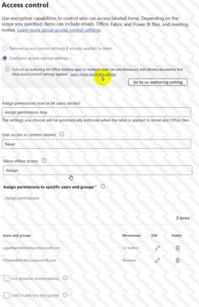We are given a sensitivity label with the following Access control settings: