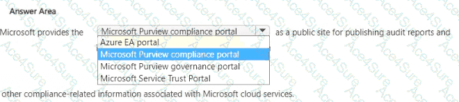 By contrast, the Microsoft Purview compliance portal is a tenant-admin portal used to configure and manage compliance solutions (e.g., DLP, Information Protection, eDiscovery, Insider Risk, Compliance Manager) within your organization—not a public repository of Microsoft’s audit artifacts. The Microsoft Purview governance portal focuses on data governance and cataloging scenarios. The Azure EA portal is used for Enterprise Agreement billing and usage management. Therefore, the public site for publishing audit reports and other compliance-related information for Microsoft cloud services is the Microsoft Service Trust Portal.