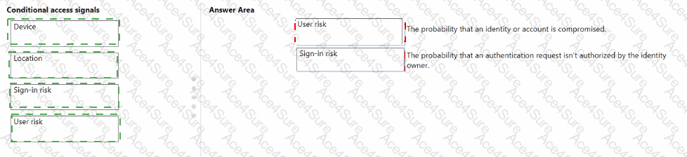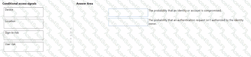 To answer, drag the appropriate Conditional Access signal type from the column on the left to its definition on the right. Each signal type may be used once, more than once, or not at all.