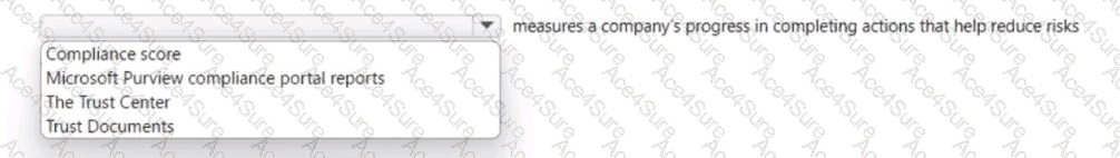 By contrast, Microsoft Purview compliance portal reports provide reporting and insights (for example, DLP, Insider Risk, Audit) but do not calculate a unified risk-reduction progress metric. The Trust Center is Microsoft’s public site for transparency about security, privacy, and compliance commitments, and Trust Documents (auditor reports, certifications, and white papers) supply evidence and reference materials. Neither of these provide an in-product, points-based measure of progress—Compliance score does.