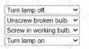 Oder the tasks needed to safely replace a lamp's light bulb from first (1) to last (4).