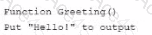 If the Greeting() function prints “Hello!” followed by a newline character (or any other separator), then calling it twice would result in the output: “Hello!\nHello!” (where \n represents the newline character).