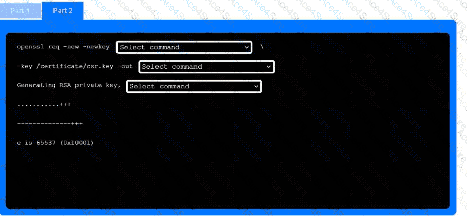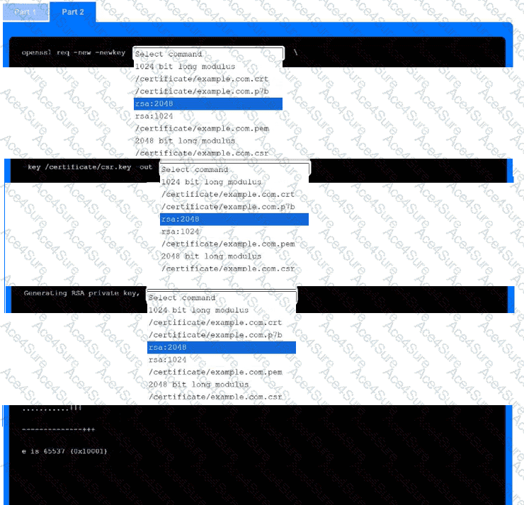 Use the drop-down menus to select the appropriate command snippets from the drop-down menus. Each command section must be filled.