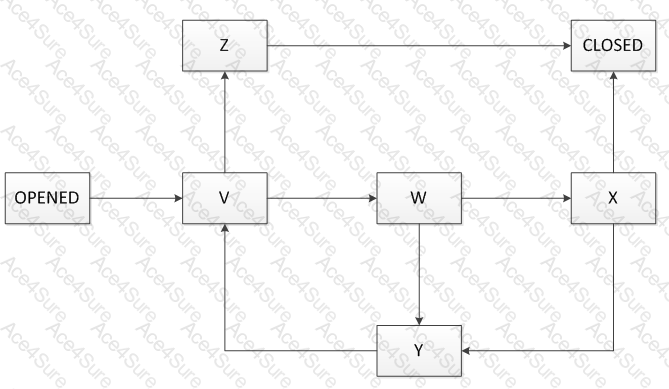 where only the initial (“Opened”) and final (“Closed”) states are indicated while the remaining states (V, W, X, Y, Z) have yet to be named.
