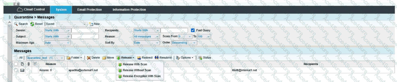 When you are attempting to release a message from the quarantine folder, you have the three choices shown here. The option of Release Encrypted With Scan will do which of the following?