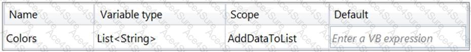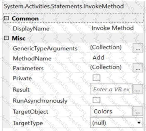 A developer wants to add items to a list of strings using the Invoke Method activity. The list is declared as follows: