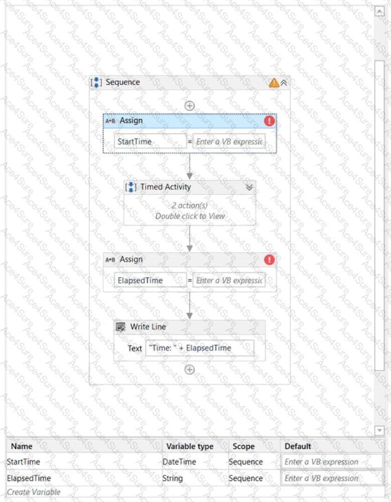 Based on the exhibit, what should the developer use to know how much time has elapsed in executing the Timed Activity sequence?