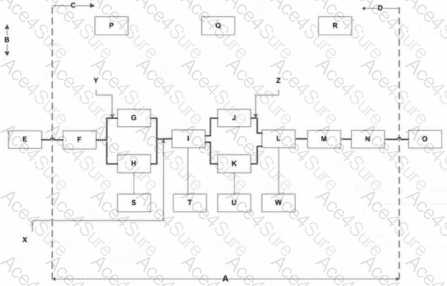 Z(another red arrow) points to a vertical connection between J and K, which represents a minor logic path—supporting functions that occur simultaneously or are secondary to the main path.