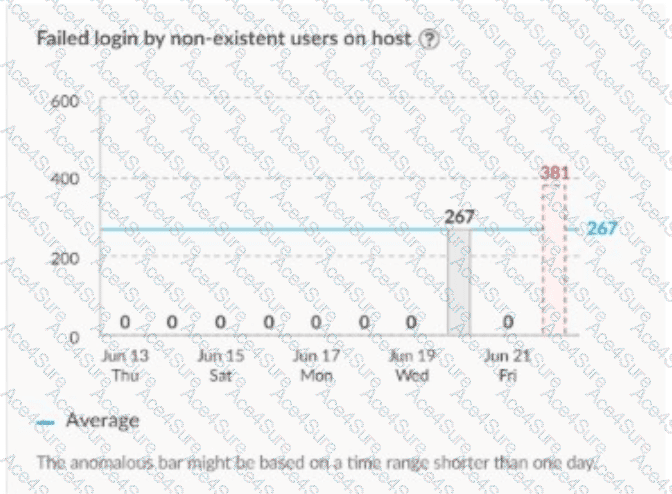 In Cortex XSIAM,Anomaly analyticsare designed to trigger alerts when a monitored activity deviates significantly from the established baseline or historical average. In the image, the "Failed login by non-existent users on host" metric remains at zero for several days and then suddenly spikes to 267 and 381—far above the average threshold. This significant deviation from the established norm is identified by the analytics engine as ananomalyand will trigger an alert for further investigation.