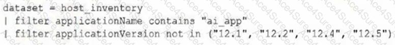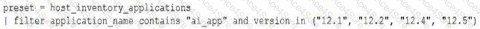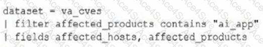 A vulnerability analyst asks a Cortex XSIAM engineer to identify assets vulnerable to newly reported zero-day CVE affecting the "ai_app" application and versions 12.1, 12.2, 12.4, and 12.5.